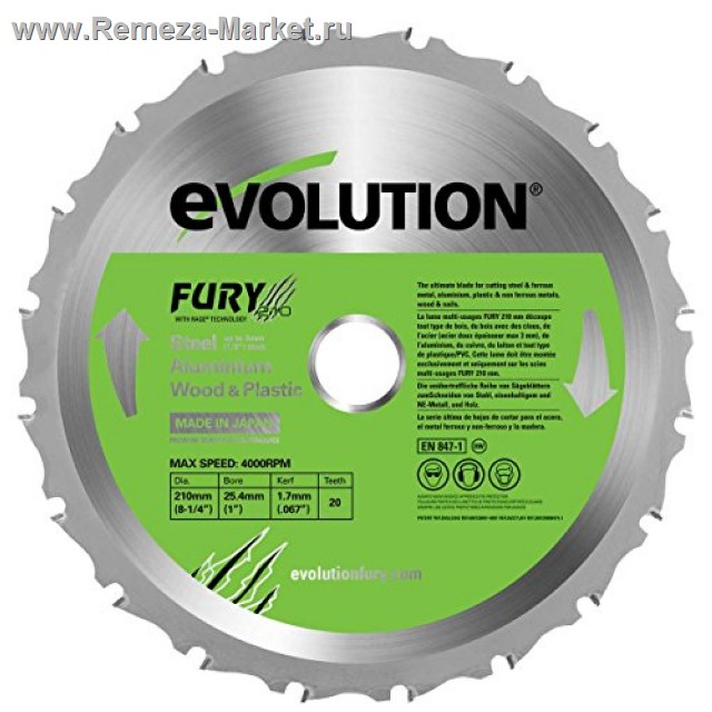 Пильный диск производства компании Evolution, универсальный, многоцелевой. Бытовой: для стали, алюминия, древесины с гвоздями.